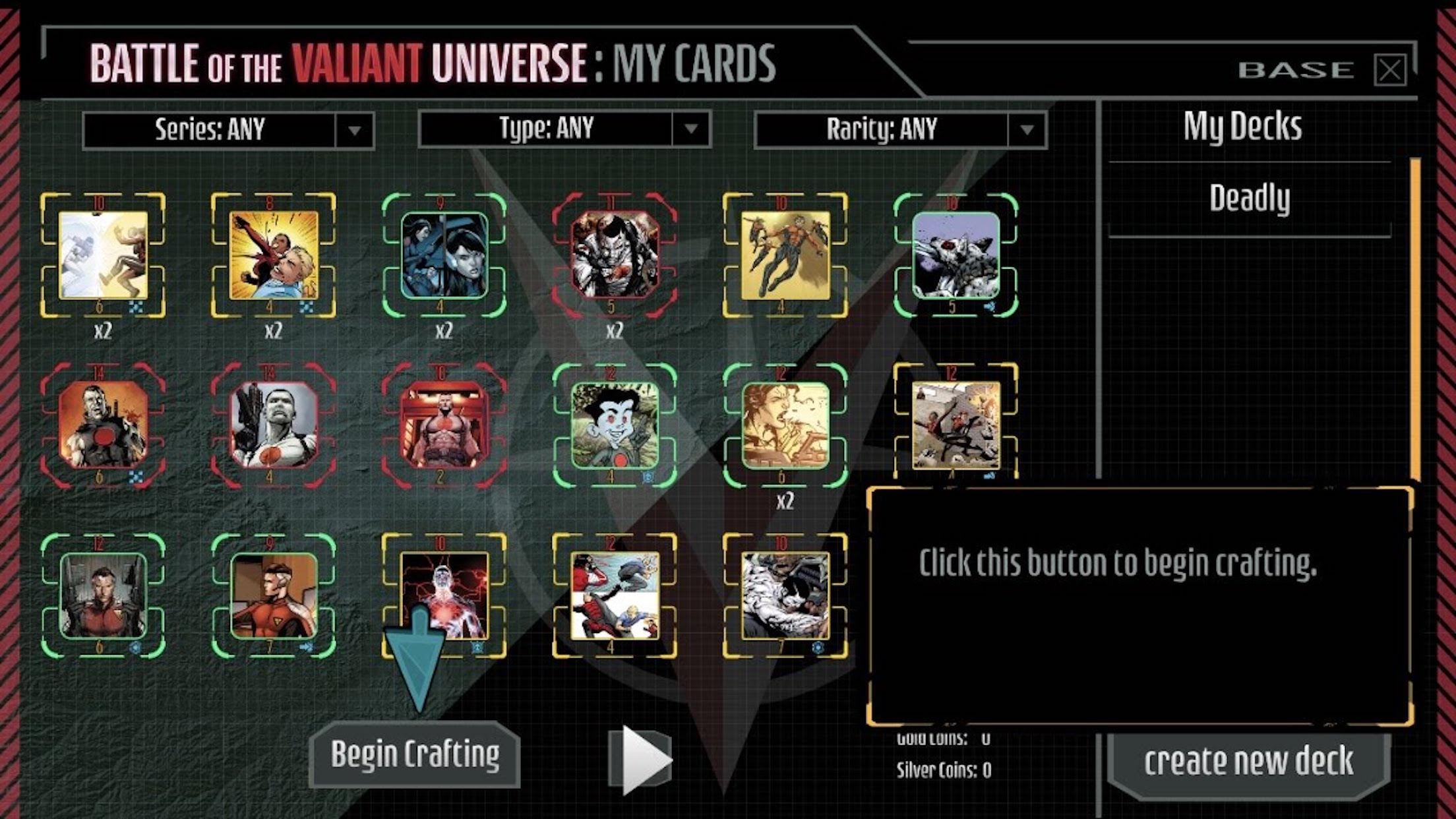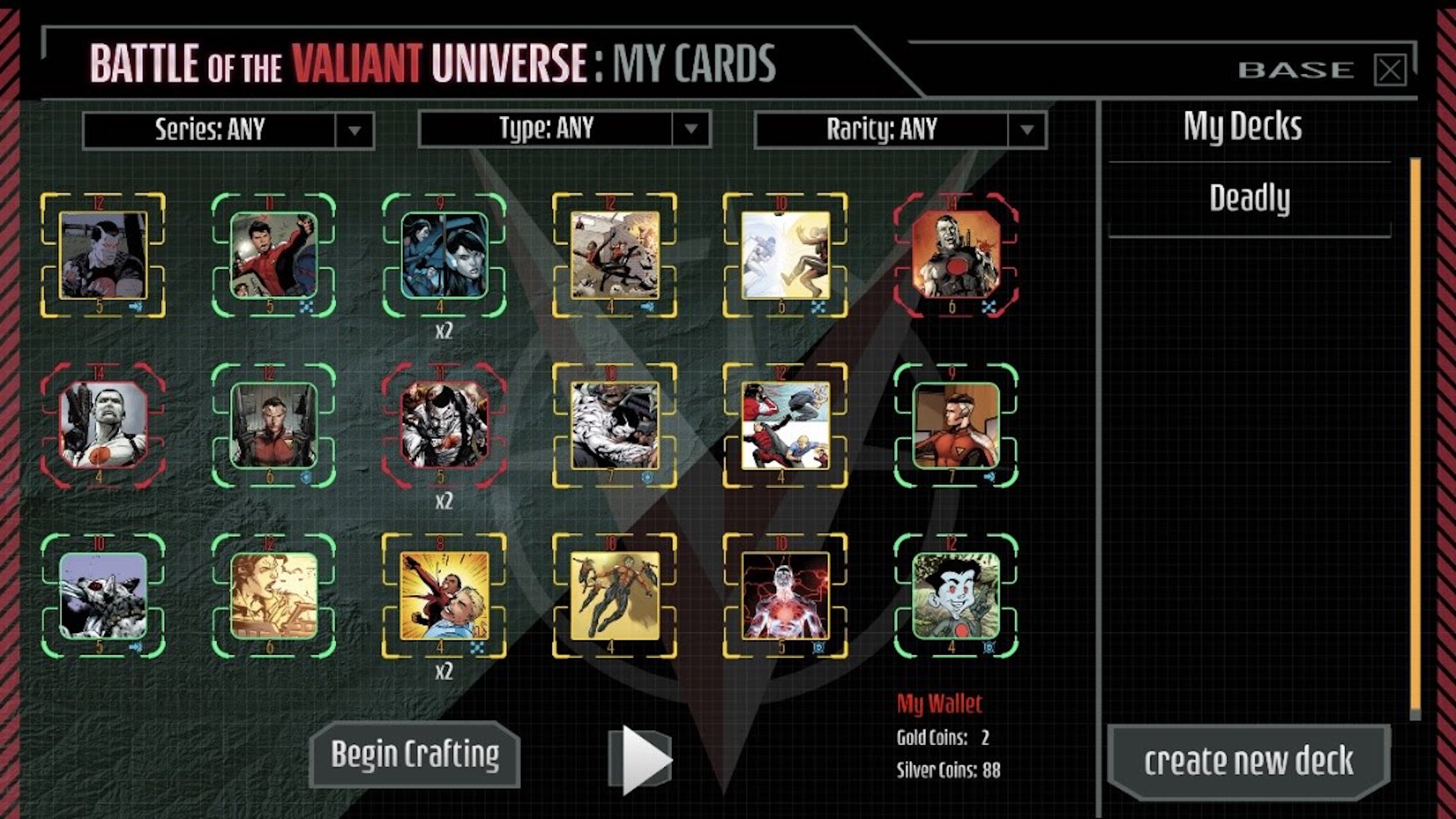 Previously available to playtest on Steam’s Early Access service, BATTLE OF THE VALIANT UNIVERSE allows players to create a deck from hundreds of available cards featuring some of Valiant’s most popular characters, from Bloodshot to H.A.R.D. Corps to Faith and much more! Challenge friends in real-time PvP matches and defeat your opponents with unique combos and power-ups. Then, update your deck by crafting new cards, finishing quests, and earning booster packs!