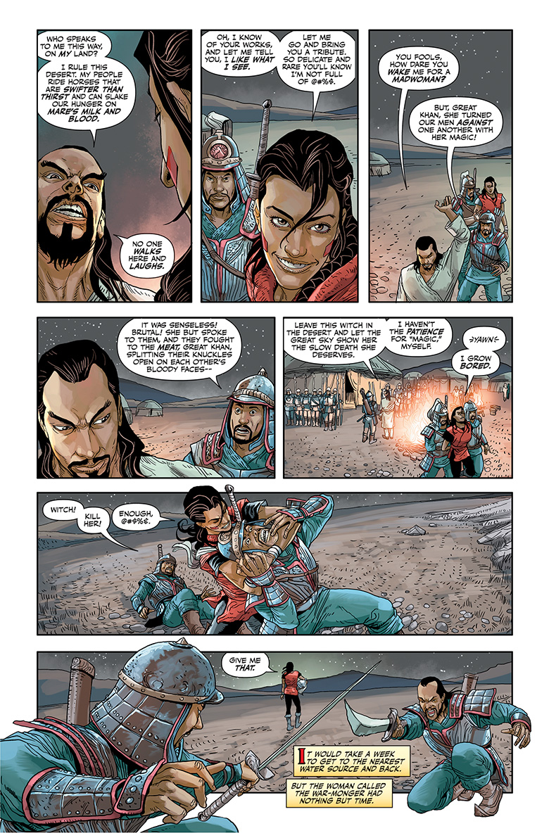 Valiant is proud to reveal a stunning first look at the lettered and colored pages from THE FORGOTTEN QUEEN #1, the debut issue centered on the powerful immortal with the uncanny ability to cause conflict and violence wherever she goes!