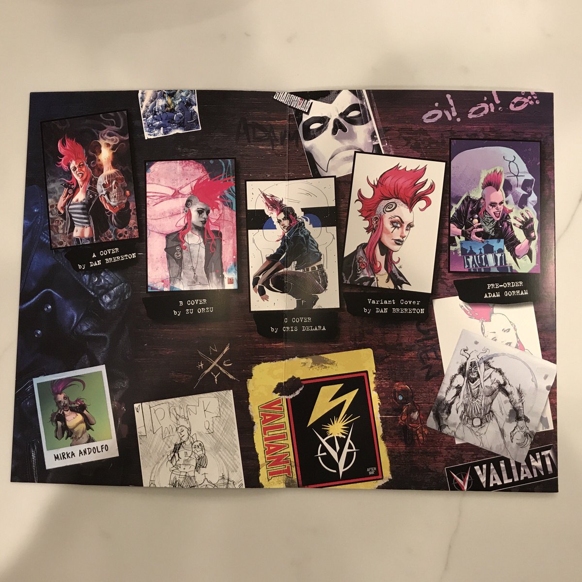 Debuting exclusively at this weekend's ComicsPRO event, Valiant has crafted a limited quantity of PUNK MAMBO #1 ashcans that come inserted in DIY "garage band" album sleeves! The ashcan is a black-and-white version of the complete issue by writer Cullen Bunn and artist Adam Gorham. The sleeve features artwork by Dan Brereton, Zu Orzu, Cris Delara, and Adam Gorham, and brilliant design by Valiant Director of Design & Production Travis Escarfullery. Each sleeve was hand assembled at Valiant HQ!