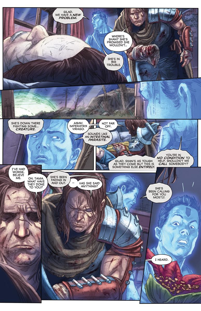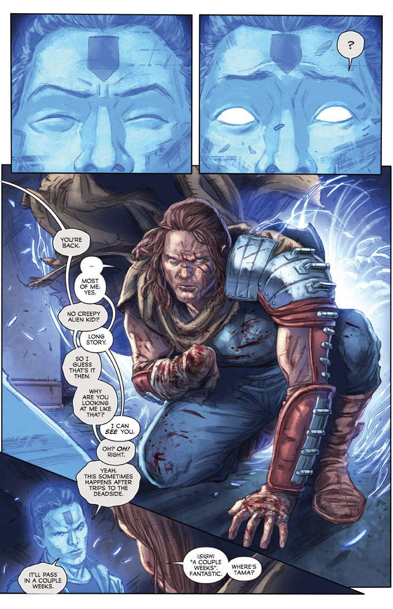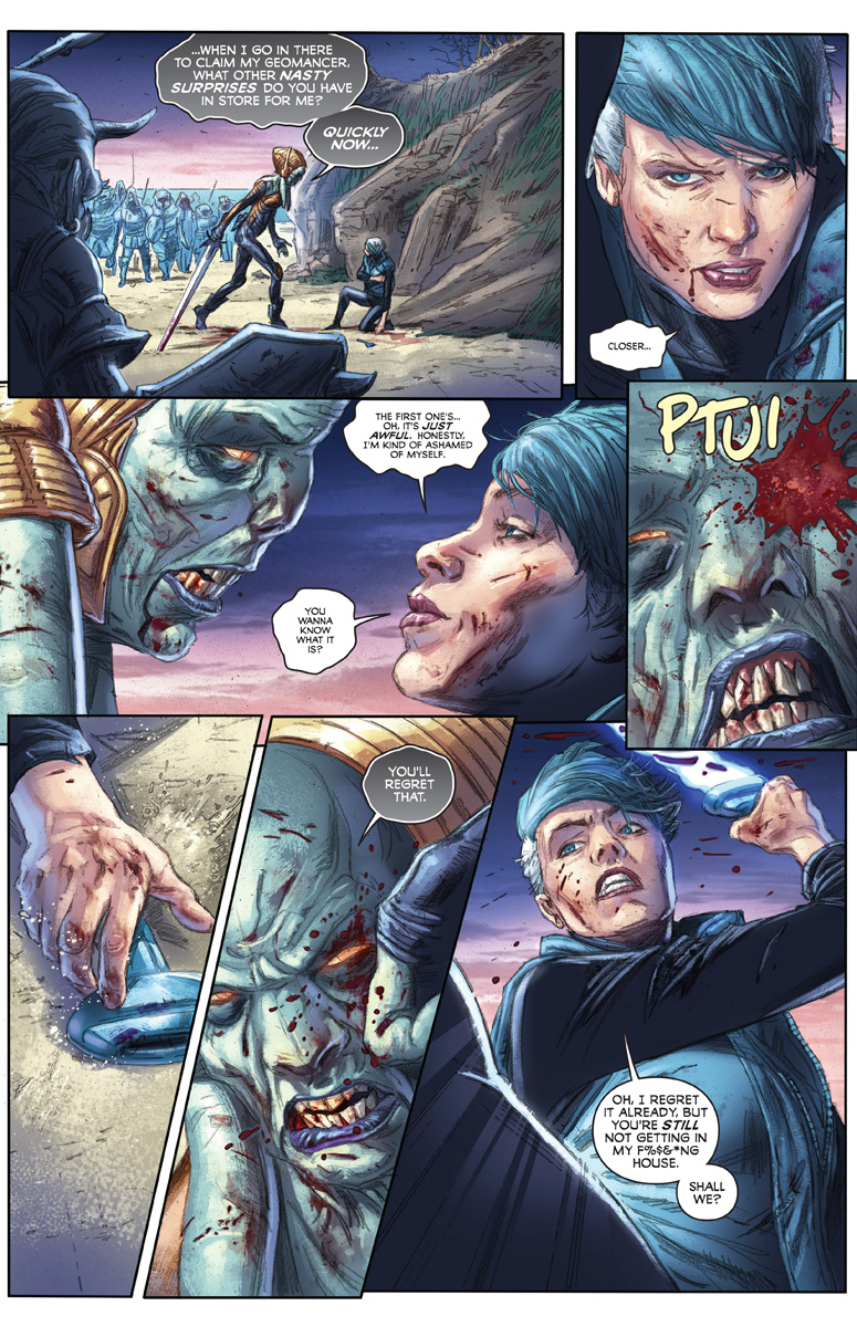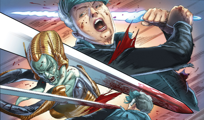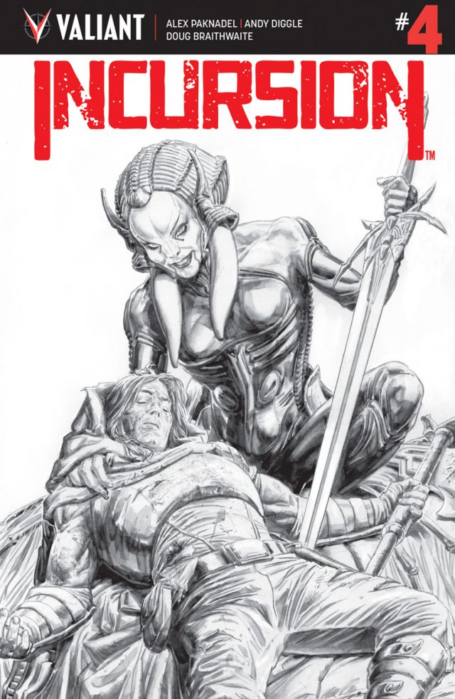 Doctor Mirage bravely stands against Imperatrix Virago in the final chapter of Alex Paknadel (Friendo), Andy Diggle (SHADOWMAN), and Doug Braithwaite's (Wolverine) epic event! How will this Earth-shattering alien invasion wrap up, and what will it mean for the Eternal Warrior and Geomancer? Find out in the final chapter of INCURSION, on sale May 22!