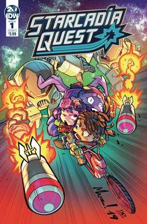 “Starcadia Quest manages to be thoughtful of its place in science fiction — acknowledging the stories and tropes that have come before — while also keeping a unique look and a laugh out-loud humor that sets it apart from any other all-ages book today,” says editor David Mariotte.