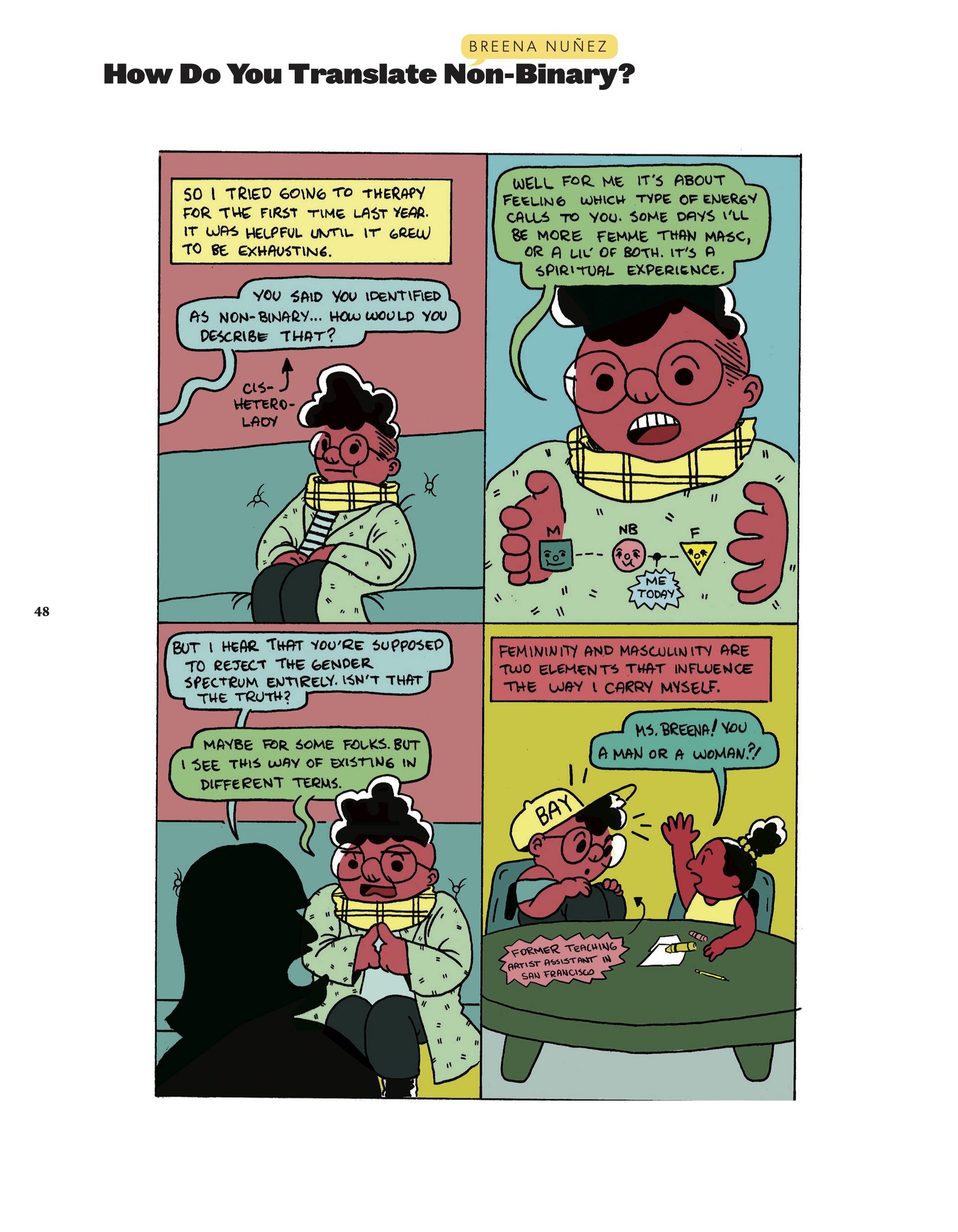 “When The Nib set out to do our first anthology in five years, we knew right away it would be centered around queer comics. Indie comics is a very queer space these days and that’s reflected in our huge list of contributors,” says Bors. “Part of what The Nib does is provide a platform for up-and-coming and marginalized voices. That’s reflected in our huge list of queer and trans contributors.”